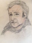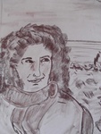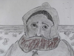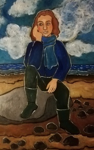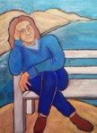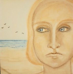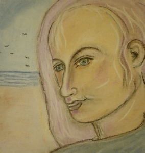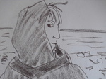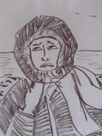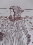 2009Alleen op het strand ,koud,winderig,stormvloed. Deze tekening is deel van een serie van tekeningen die te maken hebben met 'stormvloed'.