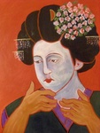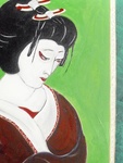 2012De Geisha met haar wit gezicht soms op zoek naar haar eigen huid,die niet wit is,of onder het witte blijft ongezien.