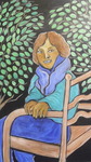 2014Oude vrouw met haar levensboom en grote zon in de achtergrond