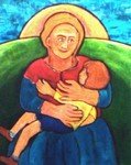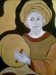2010Dit is een van de luchtboogfigurtjes die op de Sint Jan in ' S Hertogenbosch zitten. Maar op mijn schilderijen laat ik ze terug komen in onze tijd die ze met de ogen van een mens kunnen bekijken.