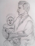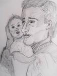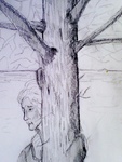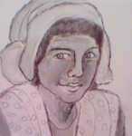 2009Alleen op het strand ,koud,winderig,stormvloed. Deze tekening is deel van een serie van tekeningen die te maken hebben met 'stormvloed'.